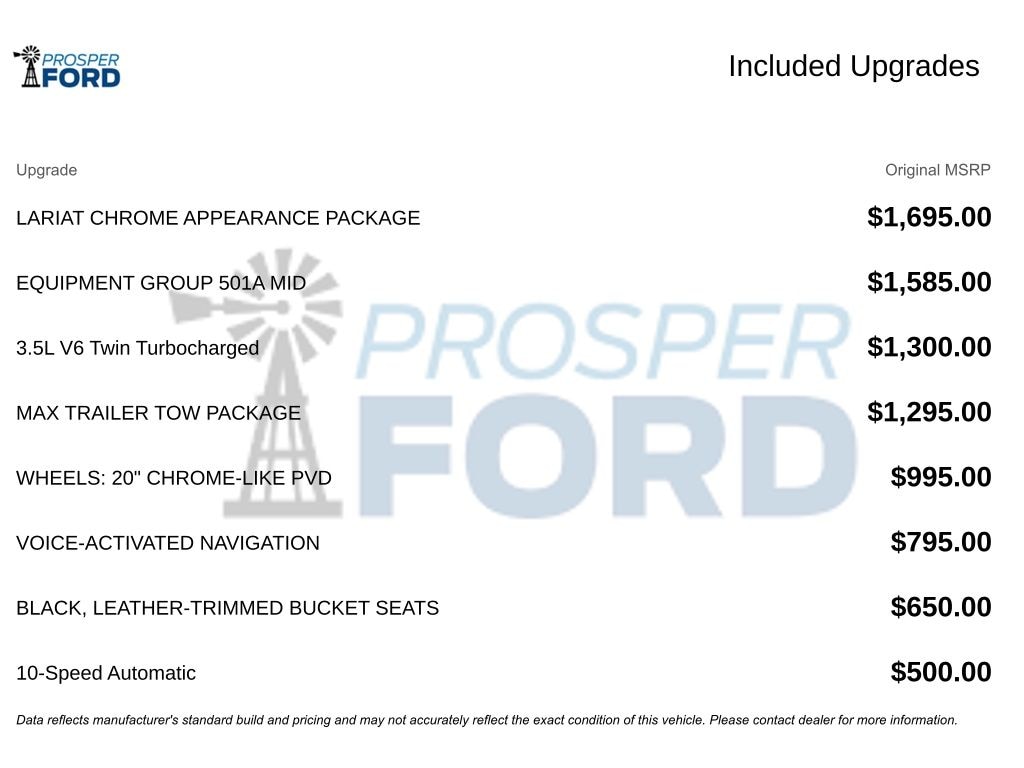 The interior of the Lariat is equally impressive, with premium leather-trimmed bucket seats that are both heated and cooled. The 10-way power-adjustable driver and passenger seats, complete with memory settings, ensure exceptional comfort and support. The voice-activated navigation system, complete with SiriusXM Traffic and Travel Link, keeps you connected and informed on the go.