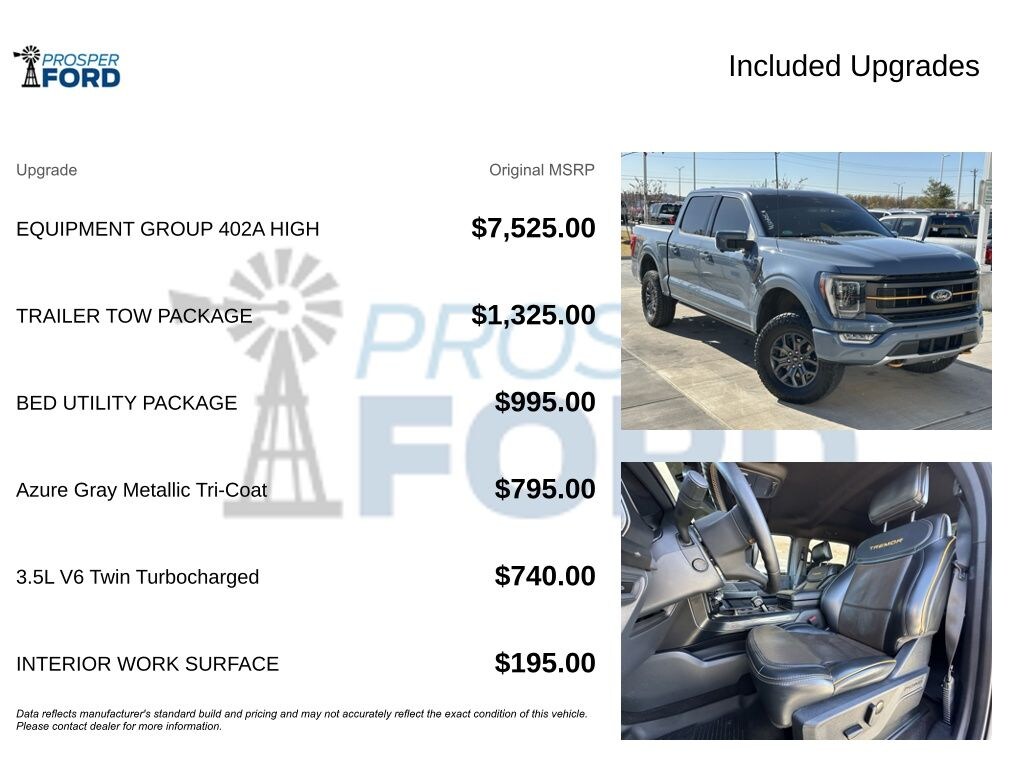 This F-150 Tremor is equipped with an impressive array of features that elevate the driving experience. The Connected Navigation system and B&O Sound System by Bang & Olufsen provide seamless connectivity and premium audio, while the Intelligent Adaptive Cruise Control with Stop & Go, Lane Centering, and Intersection Assist offer the ultimate in driver assistance. The 12-inch Productivity Screen in the instrument cluster puts vital information at your fingertips, and the Wireless Charging Pad ensures your devices are always powered up.