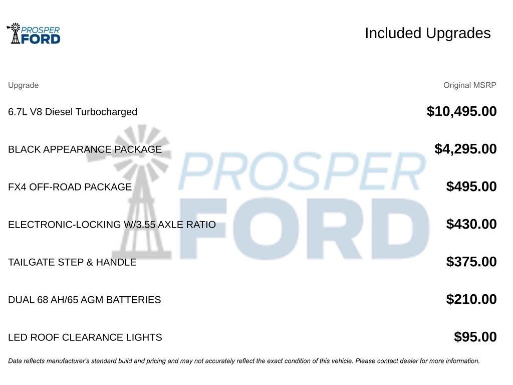 This truck is fantastic. Wanted it for the 7.3 Godzilla with the 10 speed, 4x4, and the hihest capacity on a single rear wheel truck. Was tired of the shorter beds, wanted the 8 foot. Tons of power and plenty of standard features. The standard class V 2 1/2" hitch is awesome. Special ordered with the scales, FX4, 360 camera, and onboard 2000w power. The factory spray in bedliner is the best. The FX4 gives you the bigger tires and skid plates. Payload on this nears 5000 pounds, GVWR is 11,400. Does everything I need a vehicle to do. Typical MPG is just under 15, but I do not do alot of highway.…