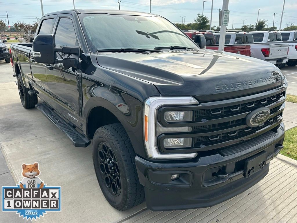 The 2024 Ford F-350SD Lariat in Agate Black Metallic is a new 4D Crew Cab vehicle featuring a 10-speed automatic transmission and a robust Power Stroke 6.7L V8 Di 32V OHV Turbodiesel engine.