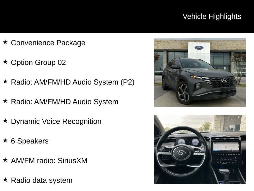 FRESH ARRIVAL, PRICED TO GO!, SUPER CLEAN, MUST SEE,10.25" Digital Instrument Cluster, 10.25" Navigation System (AVNT), 4-Wheel Disc Brakes, 6 Speakers, ABS brakes, Air Conditioning, Alloy wheels, AM/FM radio: SiriusXM, Ambient Interior Lighting, Auto High-beam Headlights, Auto-Dimming Interior Mirror, Automatic temperature control, Brake assist, Bumpers: body-color, Cargo Net, Cargo Tray, Convenience Package, Delay-off headlights, Dual Automatic Temperature Control, Dual front impact airbags, Dual front side impact airbags, Dynamic Voice Recognition, Electronic Stability Control, Emergency communication system: Blue Link Connected Car Service (3-year complimentary subscription), Exterior Parking Camera Rear, Four wheel independent suspension, Front anti-roll bar, Front Bucket Seats, Front Center Armrest, Front dual zone A/C, Fully automatic headlights, H-Tex Seat Trim, Heated door mirrors, Heated Front Bucket Seats, Heated front seats, Leather-Wrapped Shift Knob, Leather-Wrapped Steering Wheel, LED Interior Lights (Room, Map), LED Taillights, Low tire pressure warning, Occupant sensing airbag, Option Group 02, Outside temperature display, Overhead airbag, Overhead console, Passenger door bin, Passenger vanity mirror, Power door mirrors, Power driver seat, Power Liftgate, Power steering, Power Sunroof, Power windows, Radio data system, Radio: AM/FM/HD Audio System, Radio: AM/FM/HD Audio System (P2), Rear anti-roll bar, Rear side impact airbag, Rear window defroster, Remote keyless entry, Roof Rack Cross Rails, Roof rack: rails only, Side Mirrors w/Turn Signal Indicators, Speed control, Split folding rear seat, Spoiler, Stain & Odor Resistant Cloth Seat Trim, Steering wheel mounted audio controls, Traction control, Ultrasonic Rear Occupant Alert, Wheels: 17" x 7.0J" Alloy, Wheels: 19" x 7.5J" Machine-Face Finish Alloy.