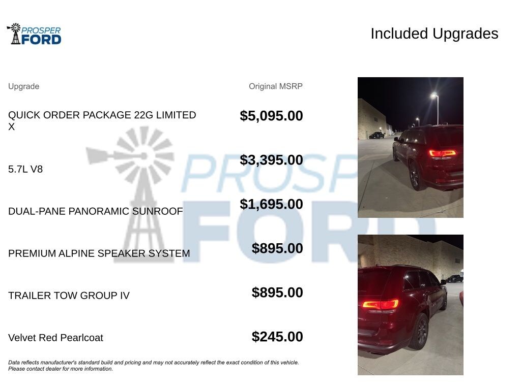 This Grand Cherokee is more than just a capable off-roader; it's a refined and luxurious SUV that will elevate your daily driving experience. The striking Velvet Red Pearlcoat exterior is complemented by a wealth of premium features, including a Dual-Pane Panoramic Sunroof, Power Liftgate, and a Premium Alpine Speaker System that will immerse you in your favorite music.