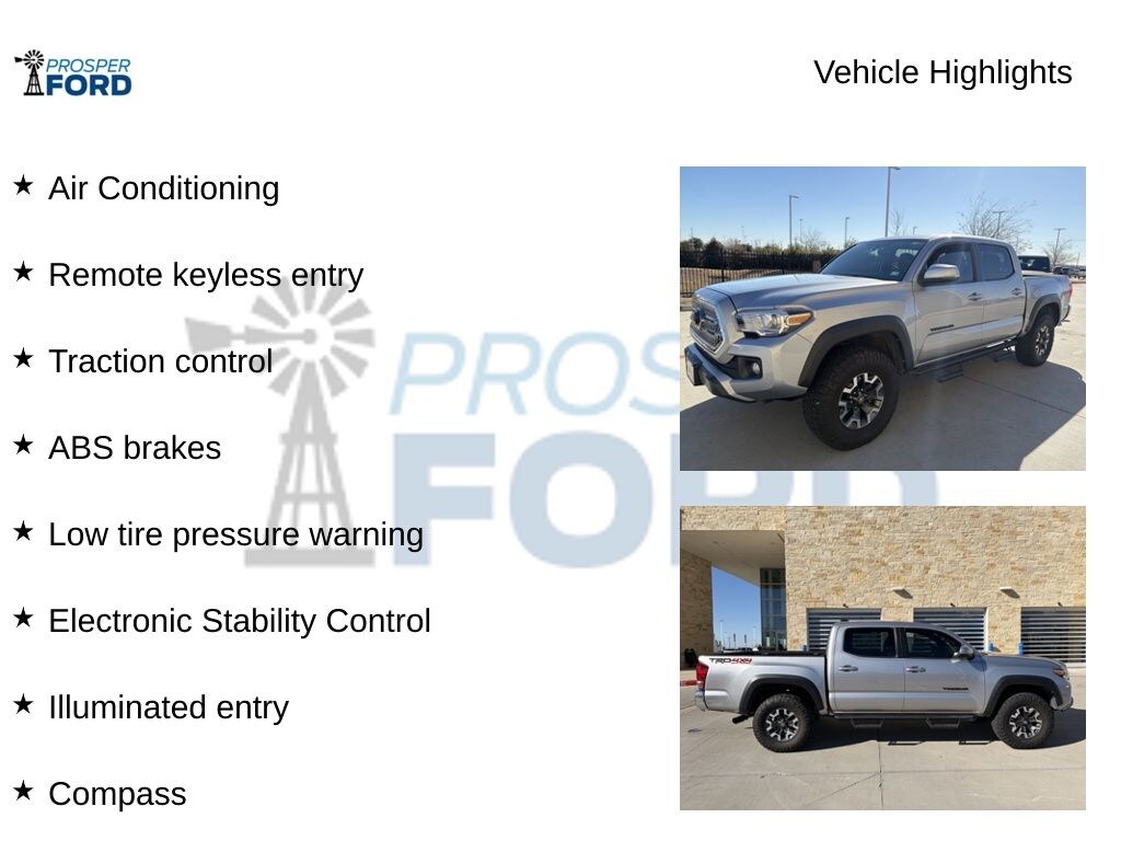 Discover the ultimate off-road companion in this 2017 Toyota Tacoma TRD Off-Road. With its rugged V6 powertrain, advanced 4WD system, and TRD-tuned suspension, this Tacoma is ready to take you on any adventure, from the winding trails to the open highway.